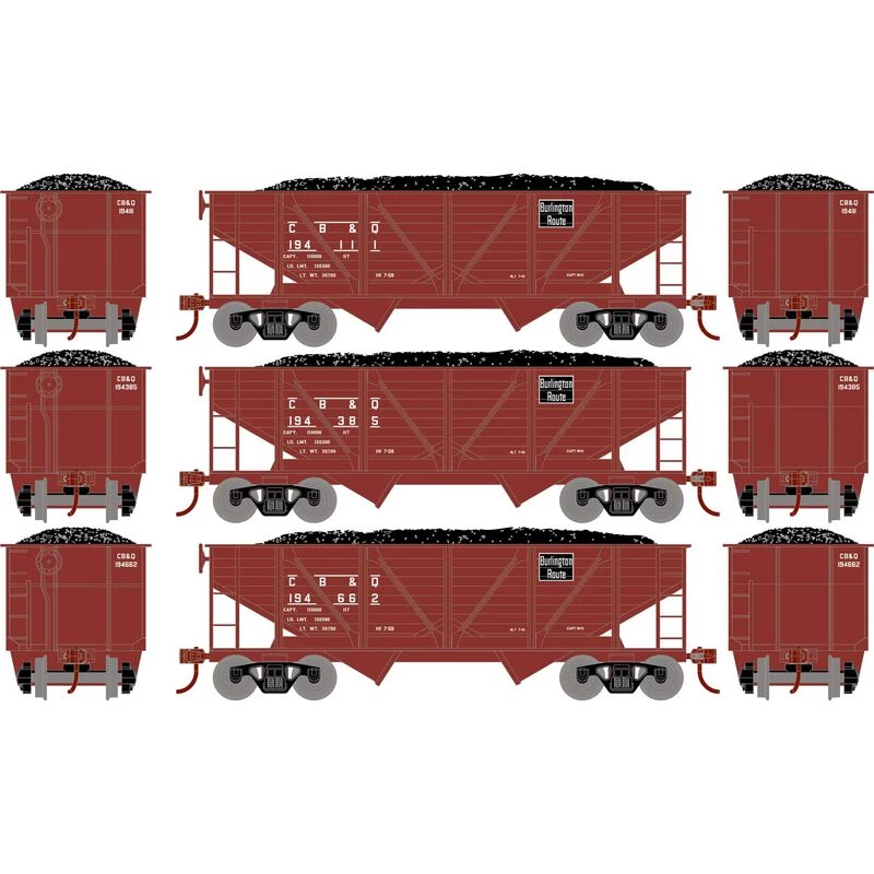 Athearn HO 34′ 2-Bay Composite Coal Hopper with Load, CB&Q(3) for Freight Cars
