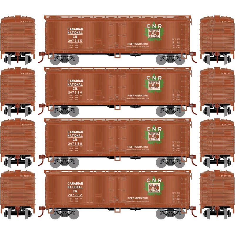 Athearn HO 40′ Wood Reefer, CN (4) for Freight Cars