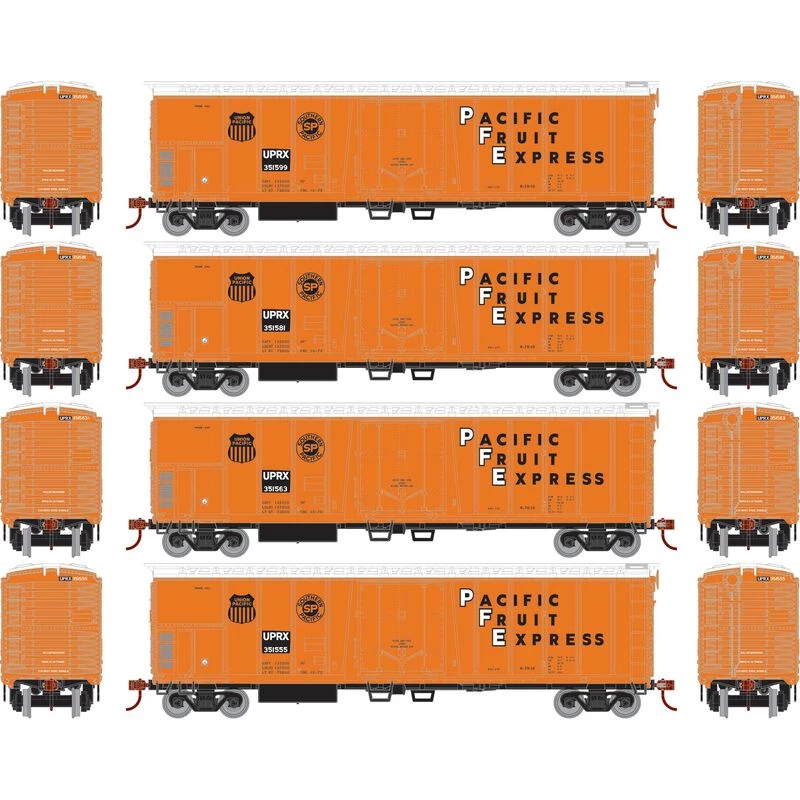 Athearn HO 50′ Ex-Post Mechanical Reefer, UPRX (4) for Freight Cars
