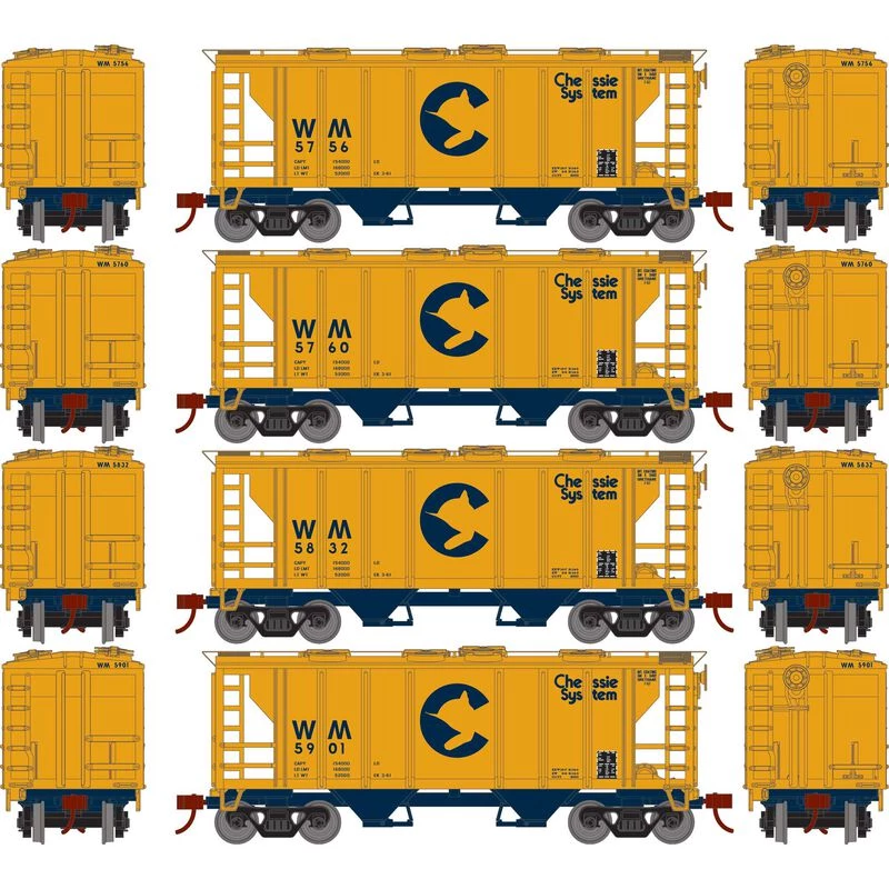 Athearn HO PS-2 2003 2-Bay Covered Hopper Chessie WM (4) for Freight Cars